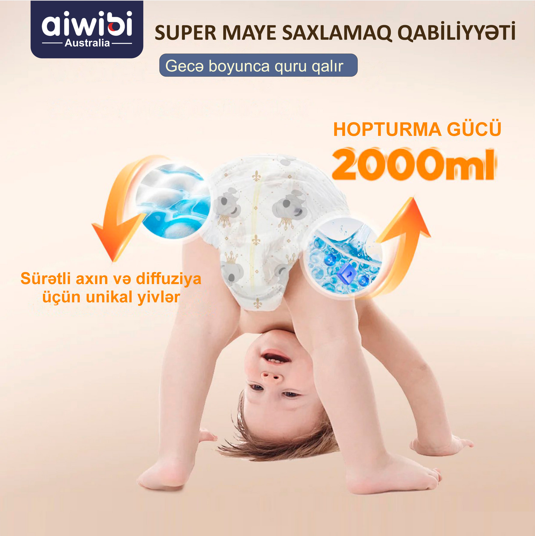 Premium, yumşaq spunbond toxunmamış parçadan hazırlanmışdır. Körpənizin zərif dərisini yumşaq şəkildə qorumaq, eyni zamanda nəmin çıxmasına və havanın dolaşmasına imkan verən yüngül turşudur.