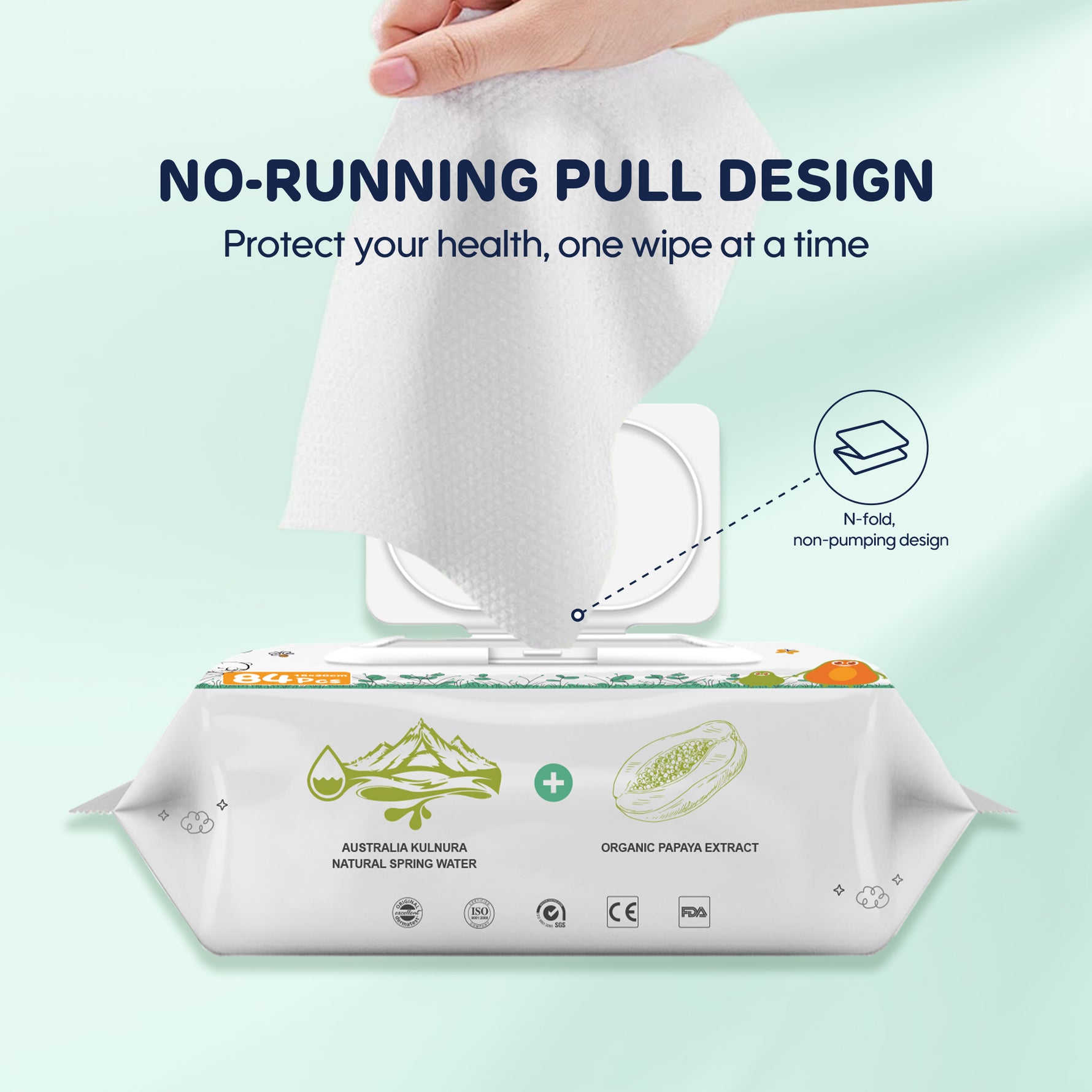 Bu salfetlər papaya, avokado və aloe veranın təbii qidası ilə gündəlik təmizliyinizi təravətləndirir. Hər salfet daha yaxşı təmizləmə təcrübəsi üçün daha qalın və yumşaq olmaq üçün hazırlanmışdır. 99.9% EDI təmiz su ilə bu salfetlər körpənizin zərif dərisi üçün təhlükəsiz və zərif toxunuş təmin edir.