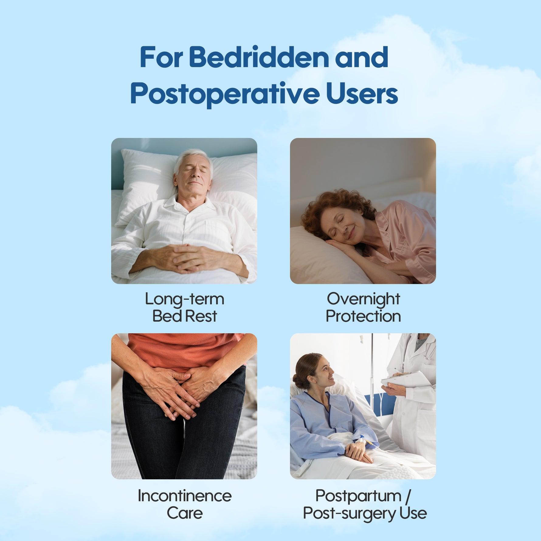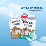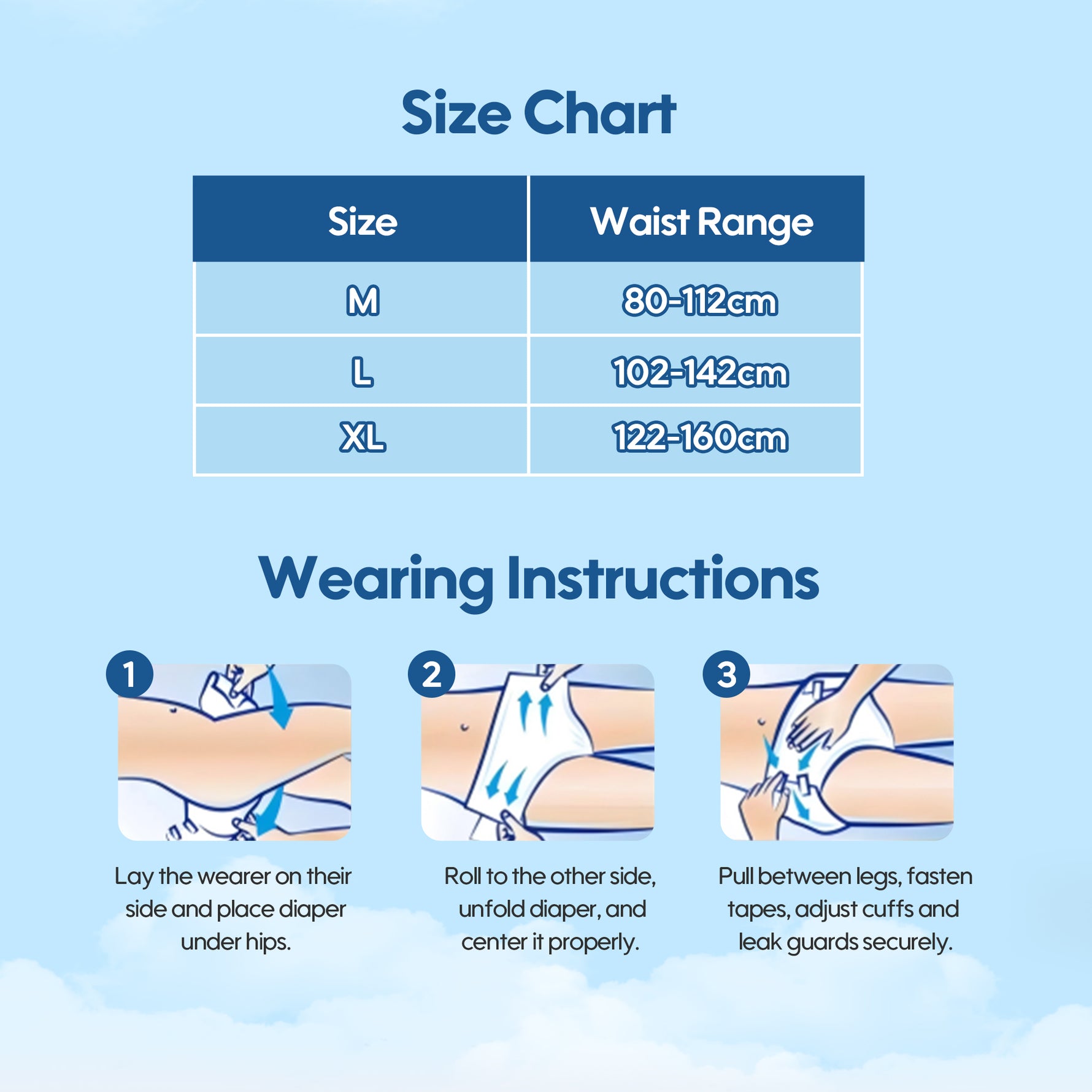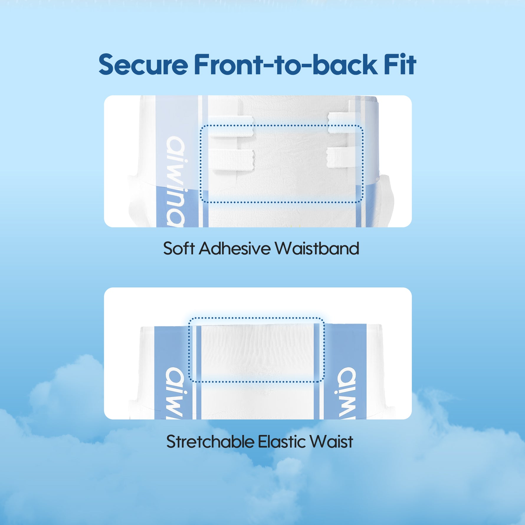 3M Magic Tape ilə təkmilləşdirilmiş bel kəməri, daha rahat oturma təmin etmək üçün istifadəçinin bədən formasına uyğun olaraq bel ölçüsünü tənzimləyə bilər. 3D sızma baryeri dizaynı tam qoruma təmin edir. Bundan əlavə, düşünülmüş nəmlik göstəricisi yenisi üçün vaxt gəldikdə rəngini dəyişir. Flüoresan, lateks və xlor kimi qatqılardan azaddır.