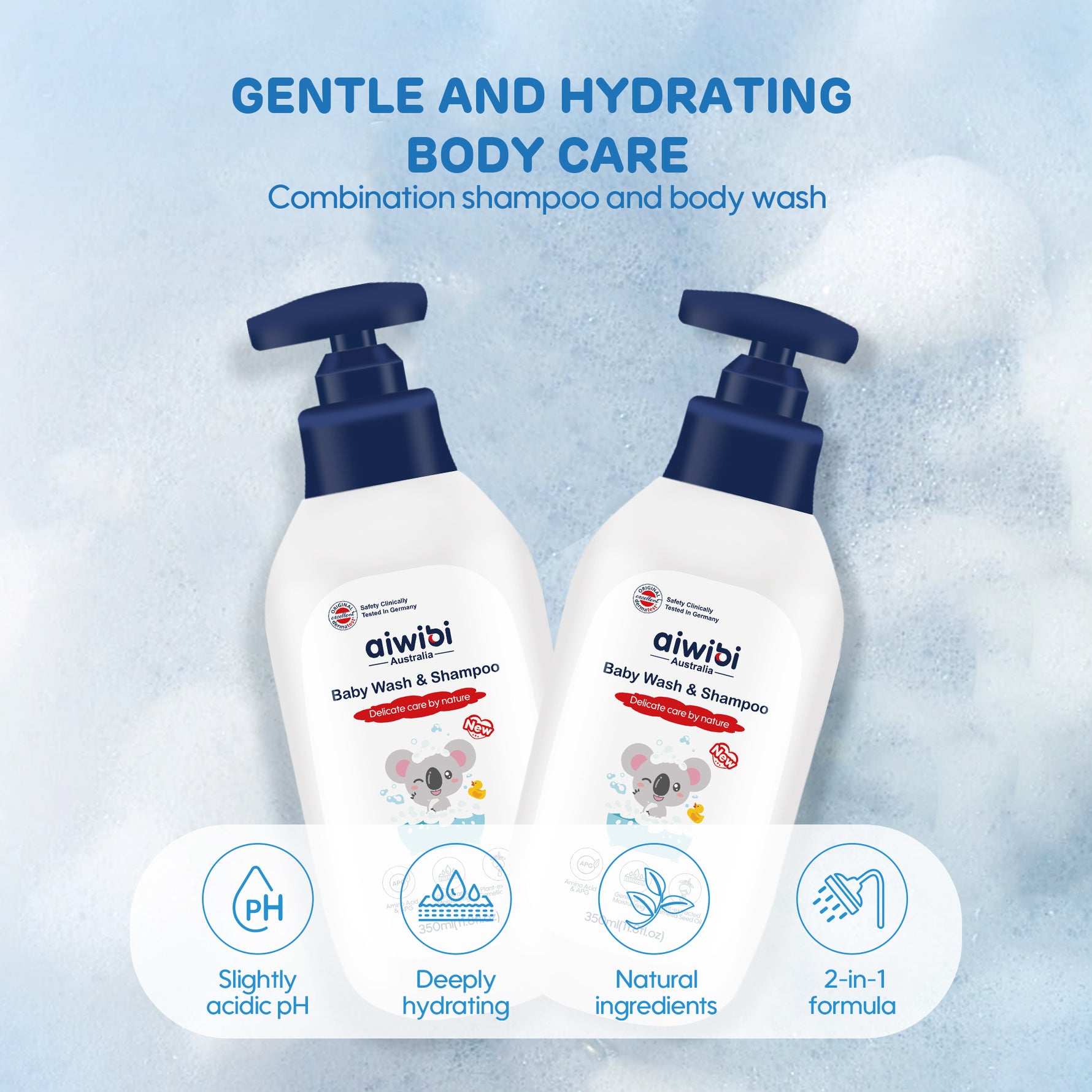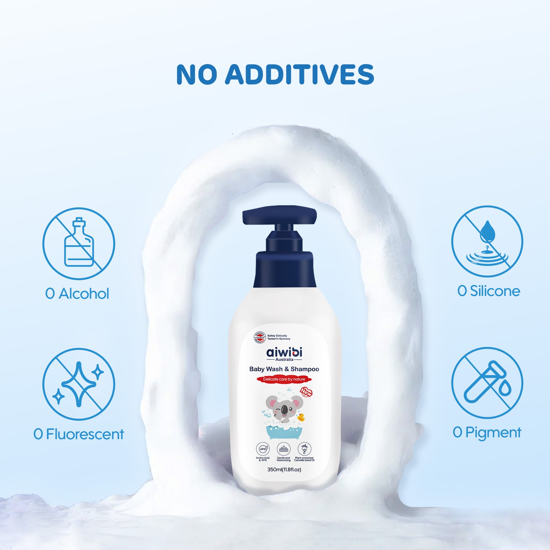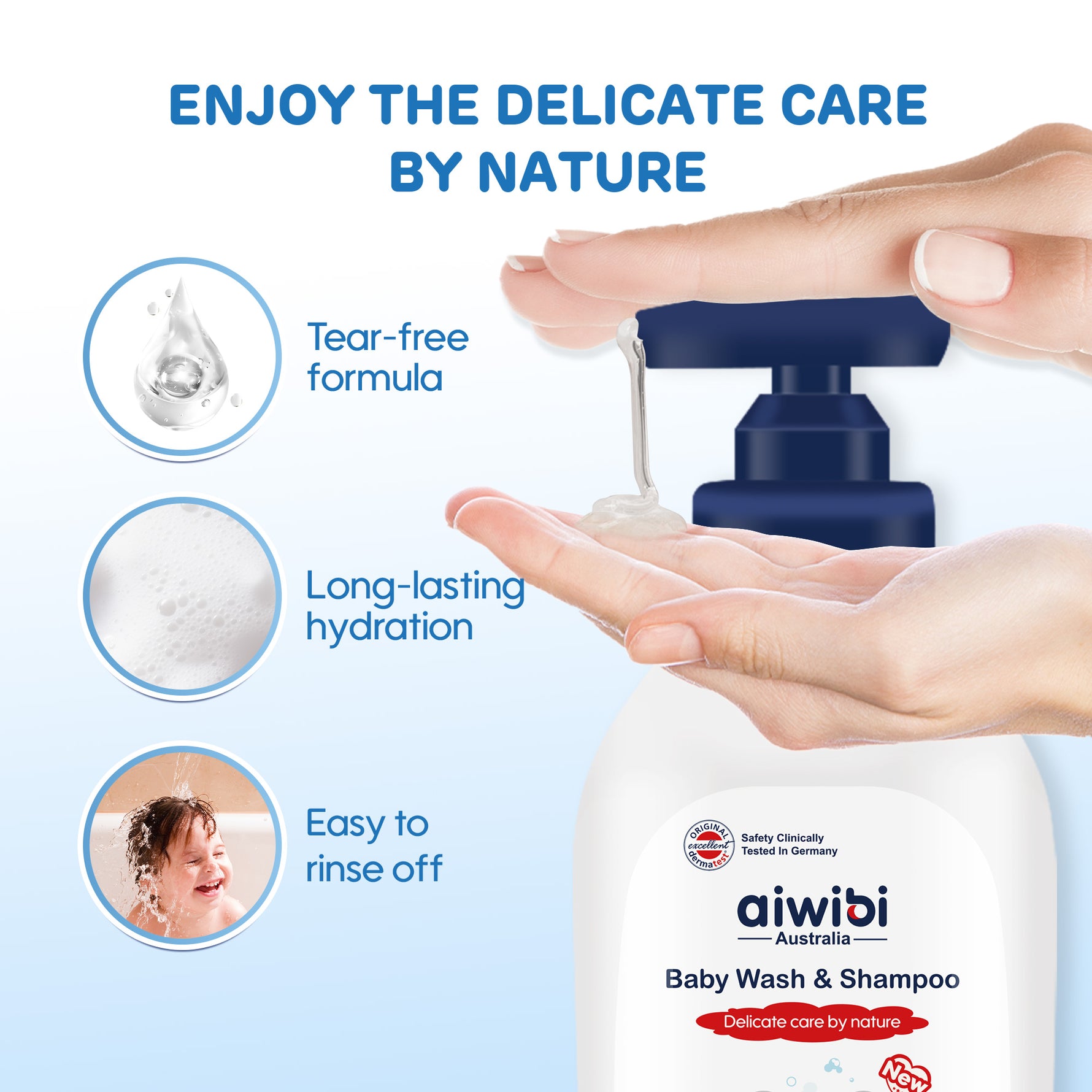 Aiwibi Körpə Yuyucu və Şampunu, təbii kameliya toxumu yağı ilə zənginləşdirilmiş bitki mənşəli, hipoallergen formulaya malikdir və körpənizin həssas dərisi üçün zərif və təhlükəsiz edir.