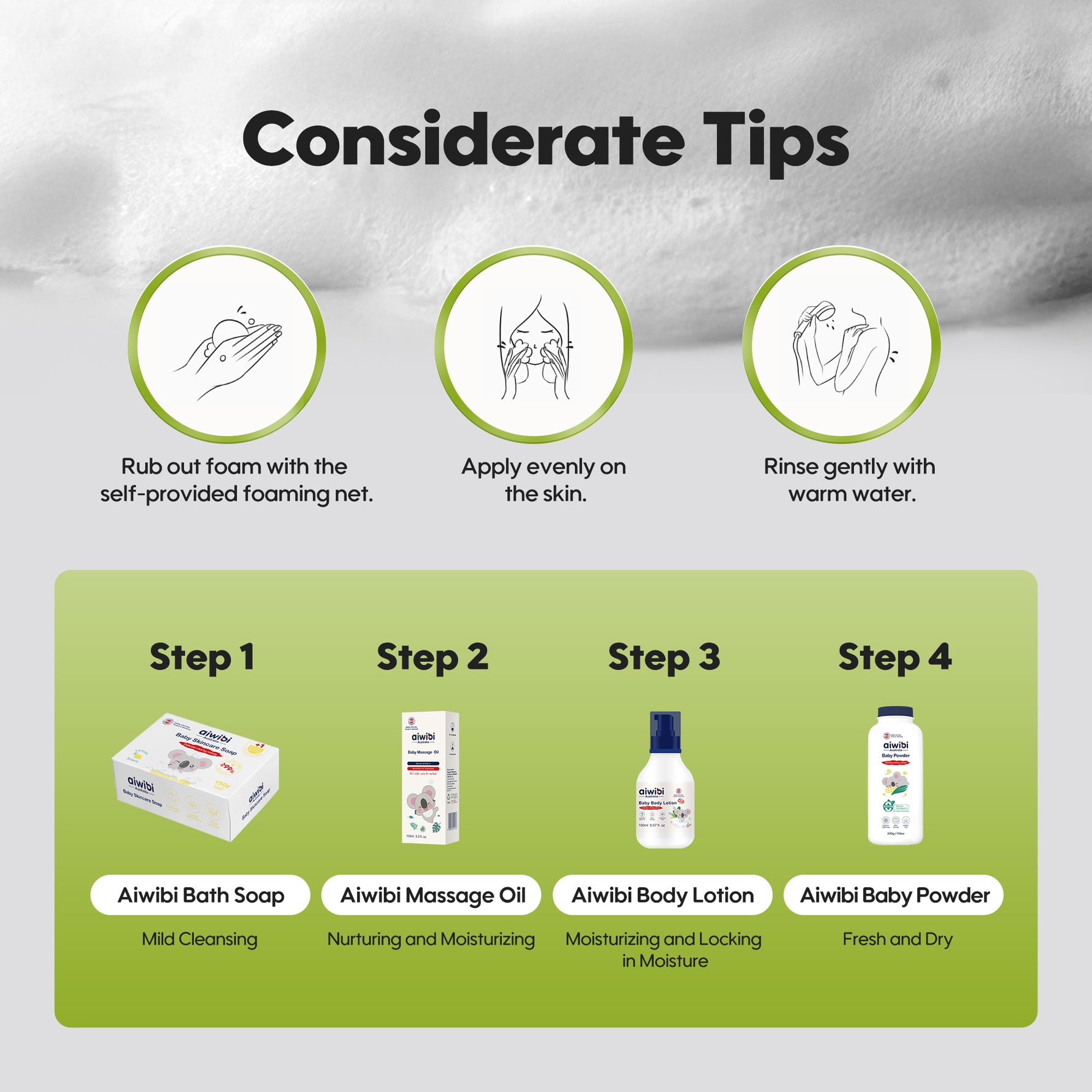 Əl yumaq, çimmək və ya üz təmizləmək üçün Aiwibi Dəri Baxımı Sabunundan istifadə edin — körpələr üçün kifayət qədər yumşaq, lakin böyüklər üçün təsirlidir. Yalnız bir Aiwibi Dəri Baxımı Sabunu ilə gündəlik işlərinizi sadələşdirin!