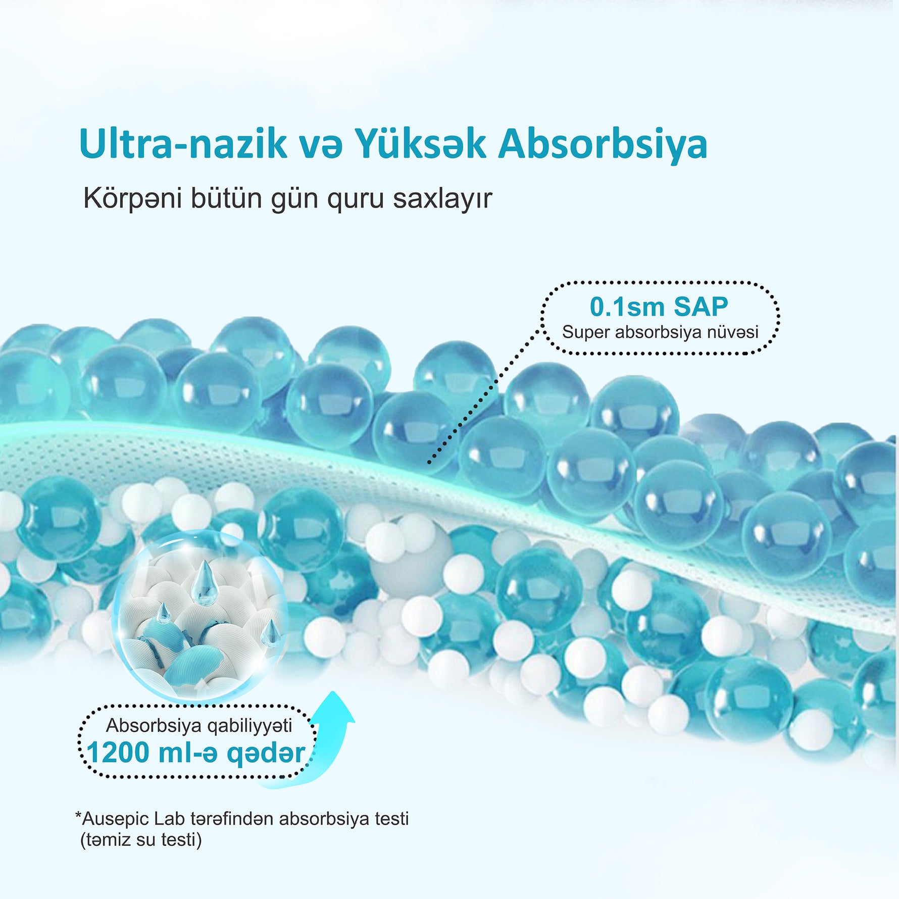 Milyardlarla ultra incə mikro məsamələrlə dizayn edilmiş eksklüziv MicroAiry Film™. Bu nəfəs ala bilən PE filmi havanın sərbəst axmasına imkan verir, eyni zamanda suyun keçməsinin qarşısını alır, nəfəs alma qabiliyyətini 50% artırır.
