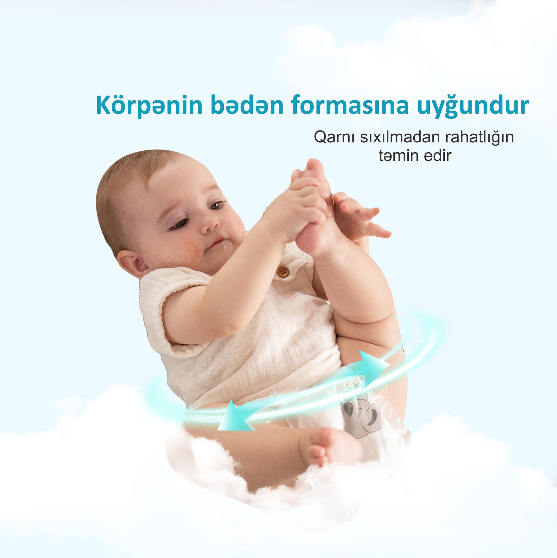 3D mirvari naxış dəri ilə təmas sahəsini və sürtünməni azaldır, nəfəs alma qabiliyyətini 30% artırır və körpənizin zərif dərisinə zərif qulluq edir.