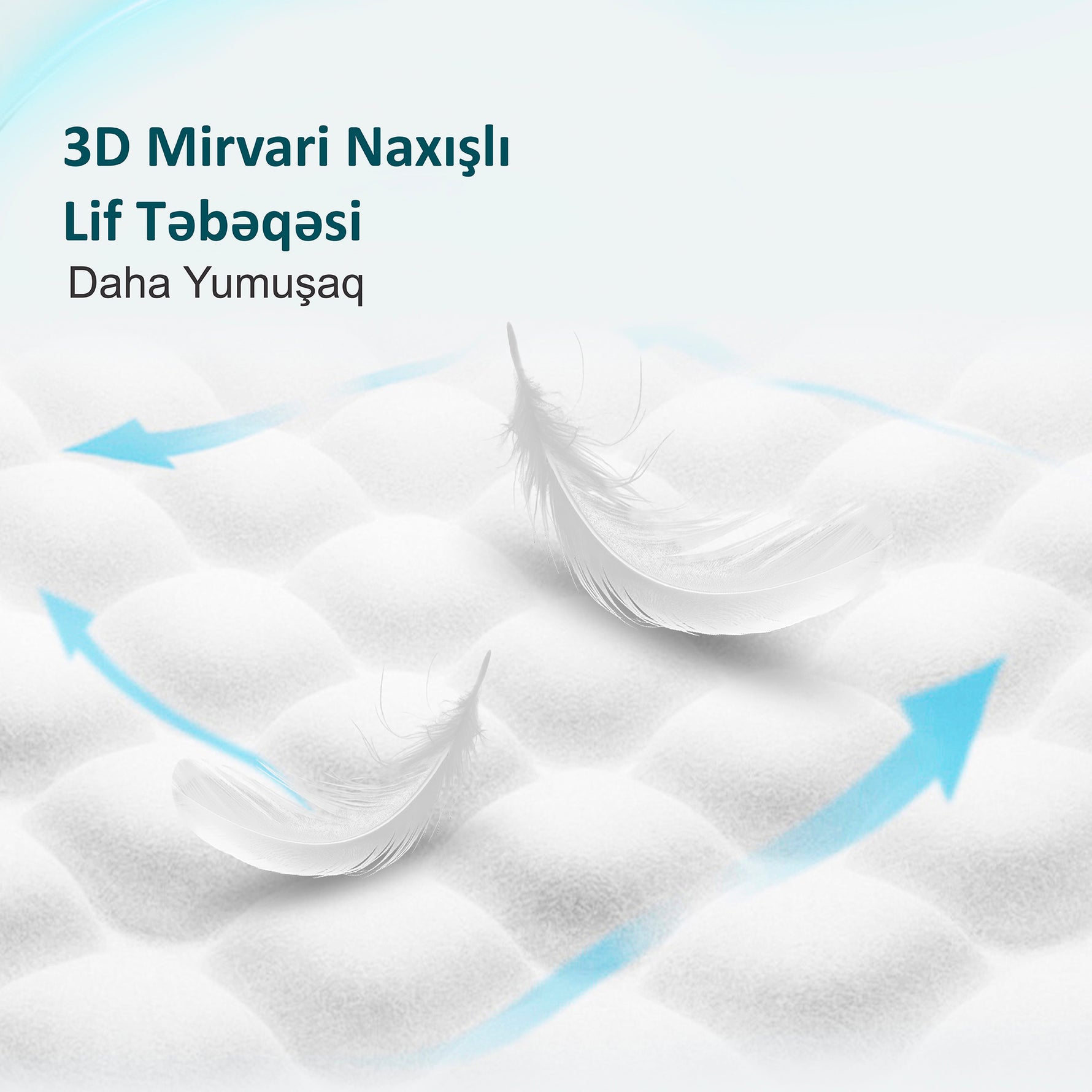 3D mirvari naxış dəri ilə təmas sahəsini və sürtünməni azaldır, nəfəs alma qabiliyyətini 30% artırır və körpənizin zərif dərisinə zərif qulluq edir.