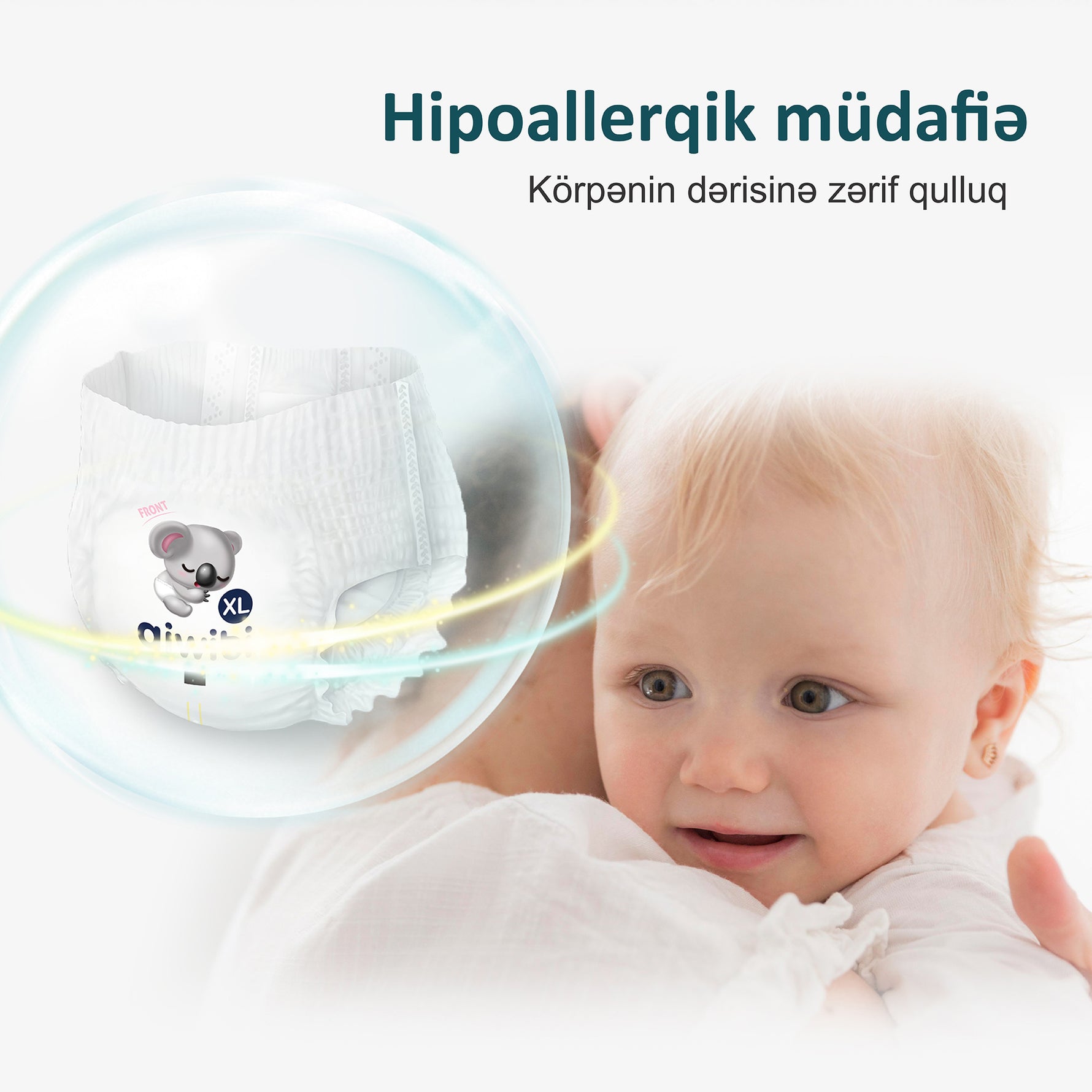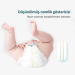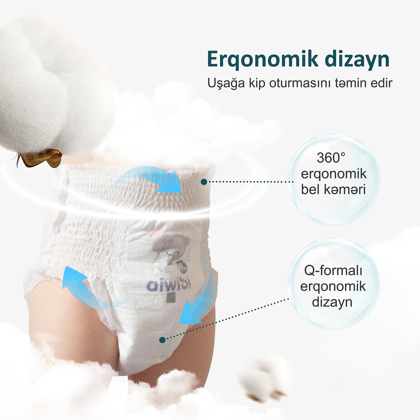 Bu şalvarda körpənizlə birlikdə hərəkət edən təhlükəsiz, yumşaq oturuş üçün 360 dərəcə hərtərəfli kəmər var. Rahat rütubət göstəricisi dəyişən vaxtdan fərziyyəni götürür. Tez və asan çıxarmaq üçün asan cırılan tərəflərə malikdir və yumşaq, rahat materiallar körpənizin bütün gün xoşbəxt qalmasını təmin edir. İstifadə etdikdən sonra onu tullantı lenti ilə bərkidin. Üstəlik, nəfəs alma qabiliyyəti və sürətli udma qabiliyyəti görünən nəmlik testləri ilə təsdiqlənir və son quruluğu təmin edir.