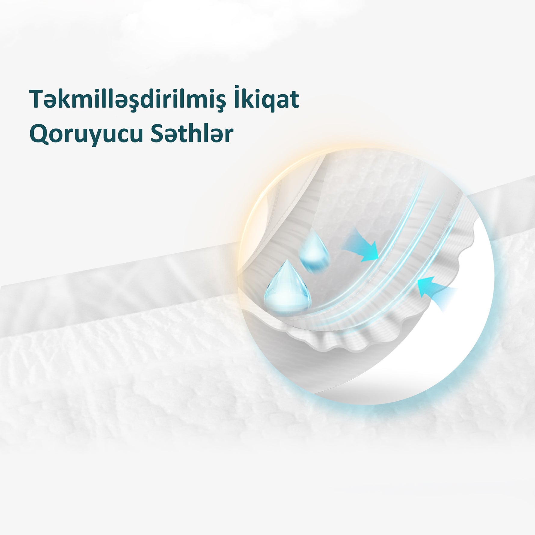 Premium, yumşaq spunbond toxunmamış parçadan hazırlanmışdır. Körpənizin zərif dərisini yumşaq şəkildə qorumaq, eyni zamanda nəmin çıxmasına və havanın dolaşmasına imkan verən yüngül turşudur.
