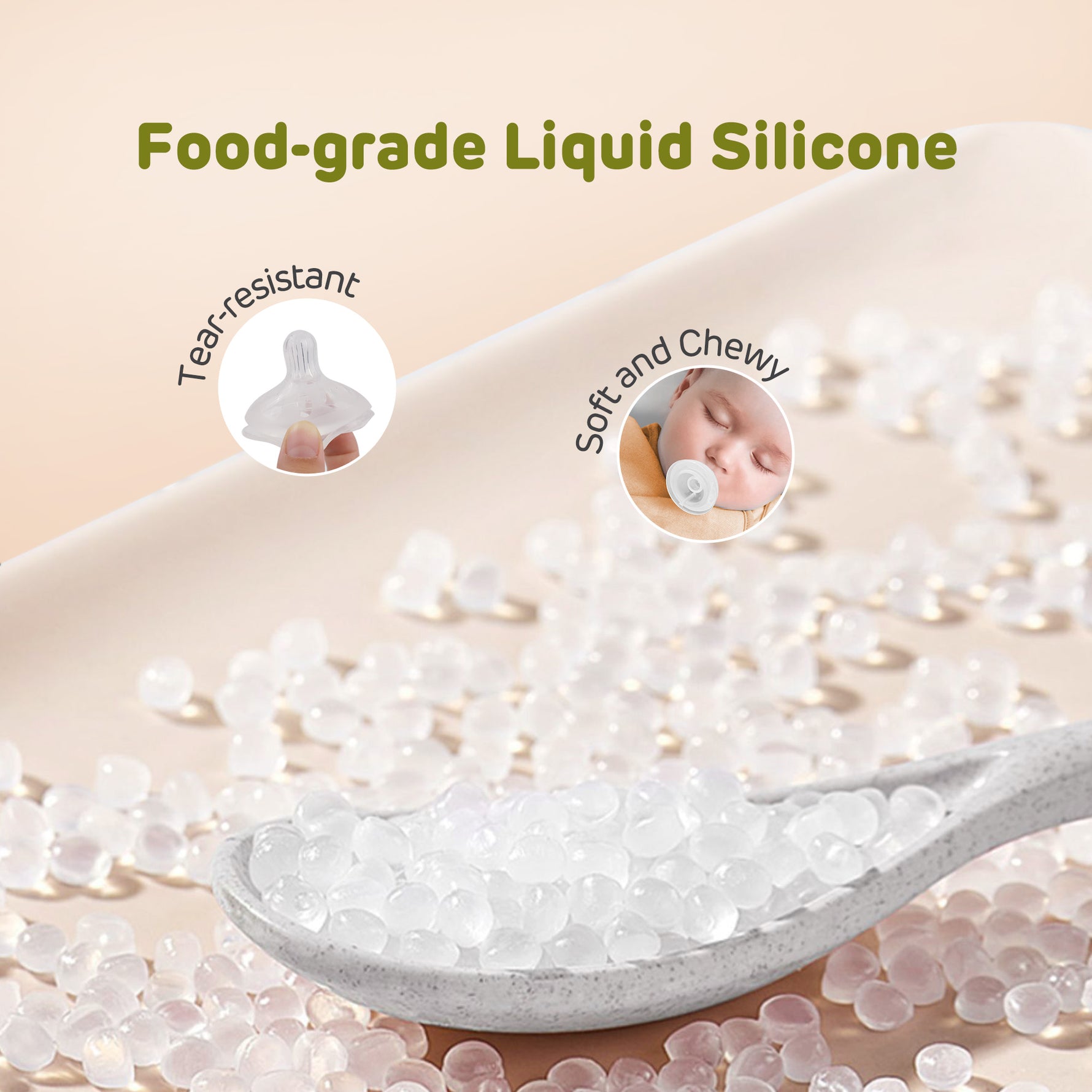 BPA-sız, çeynənməyə davamlı və ana döşü kimi yumşaqdır.