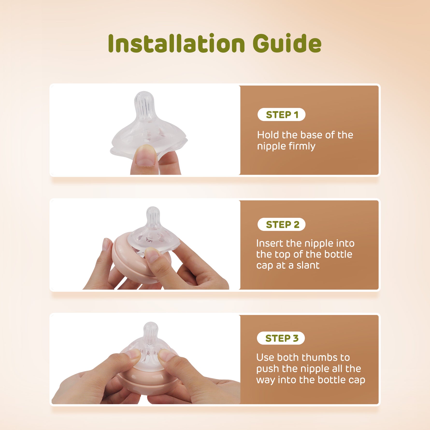 Dəyirmi məmə ucu gündüz rahatlığı üçün ananın döşünü təqlid edir, yan əyri isə gecə sağlam ağız inkişafını dəstəkləyir.
