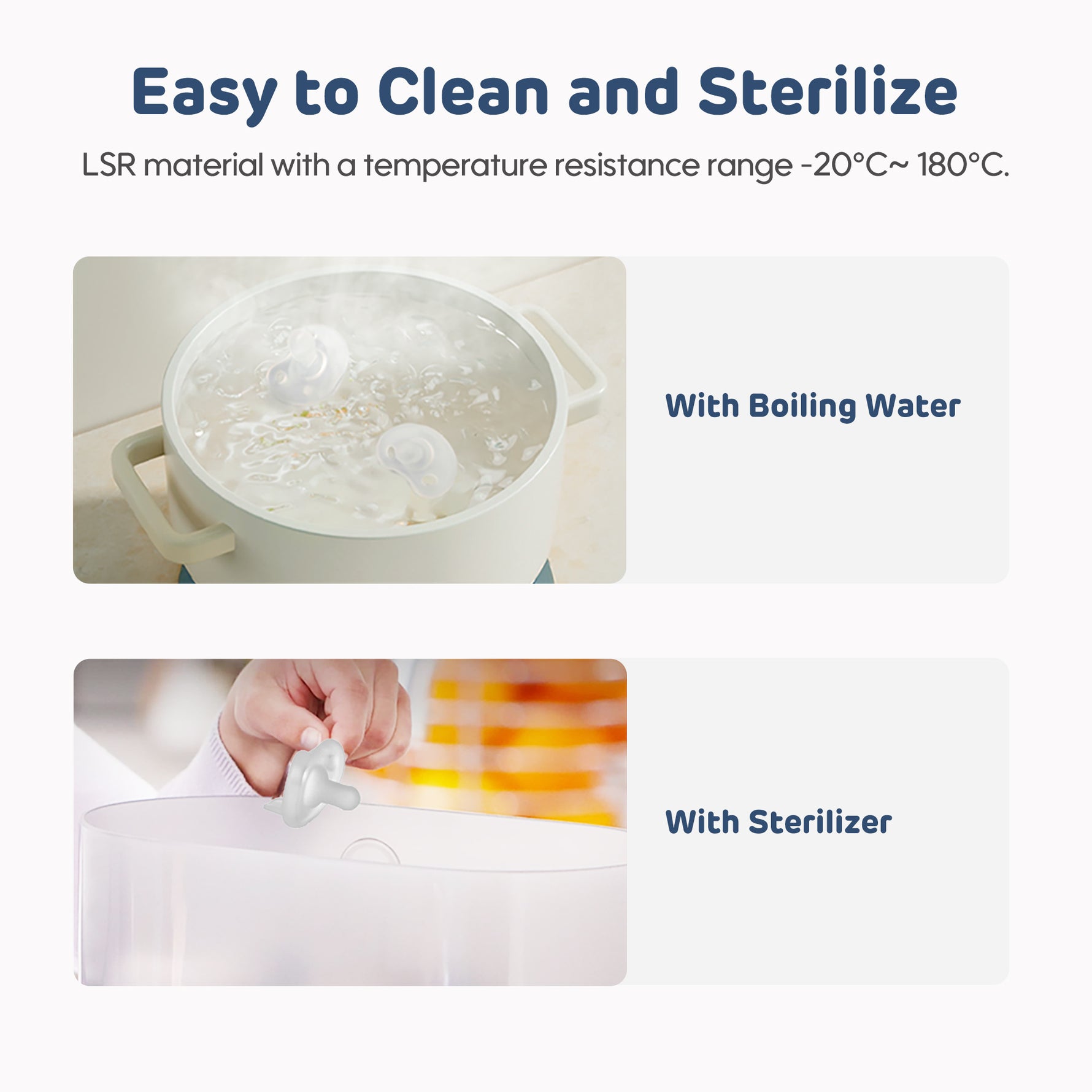 Əlbəttə! Davamlı silikon materialı rahat təmizləmə üçün qaynar su və ya sterilizator istifadə edərək sterilizasiya etmək olar.
